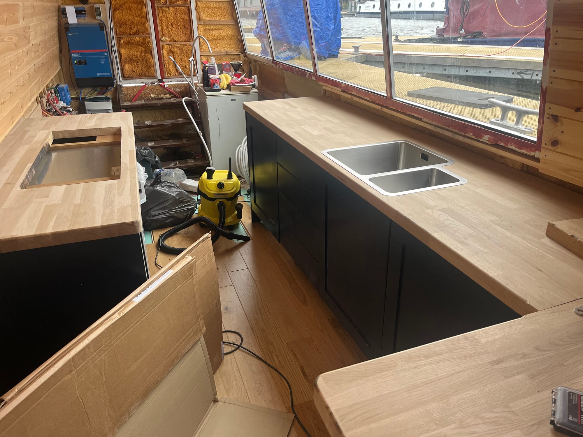 I also finished cutting lighting grooves underneath and for bolting the 2 pieces together, along with the routing the curved edges. One more hole for the tap, and the port side is almost done. For the starboard I still need to think about gas...