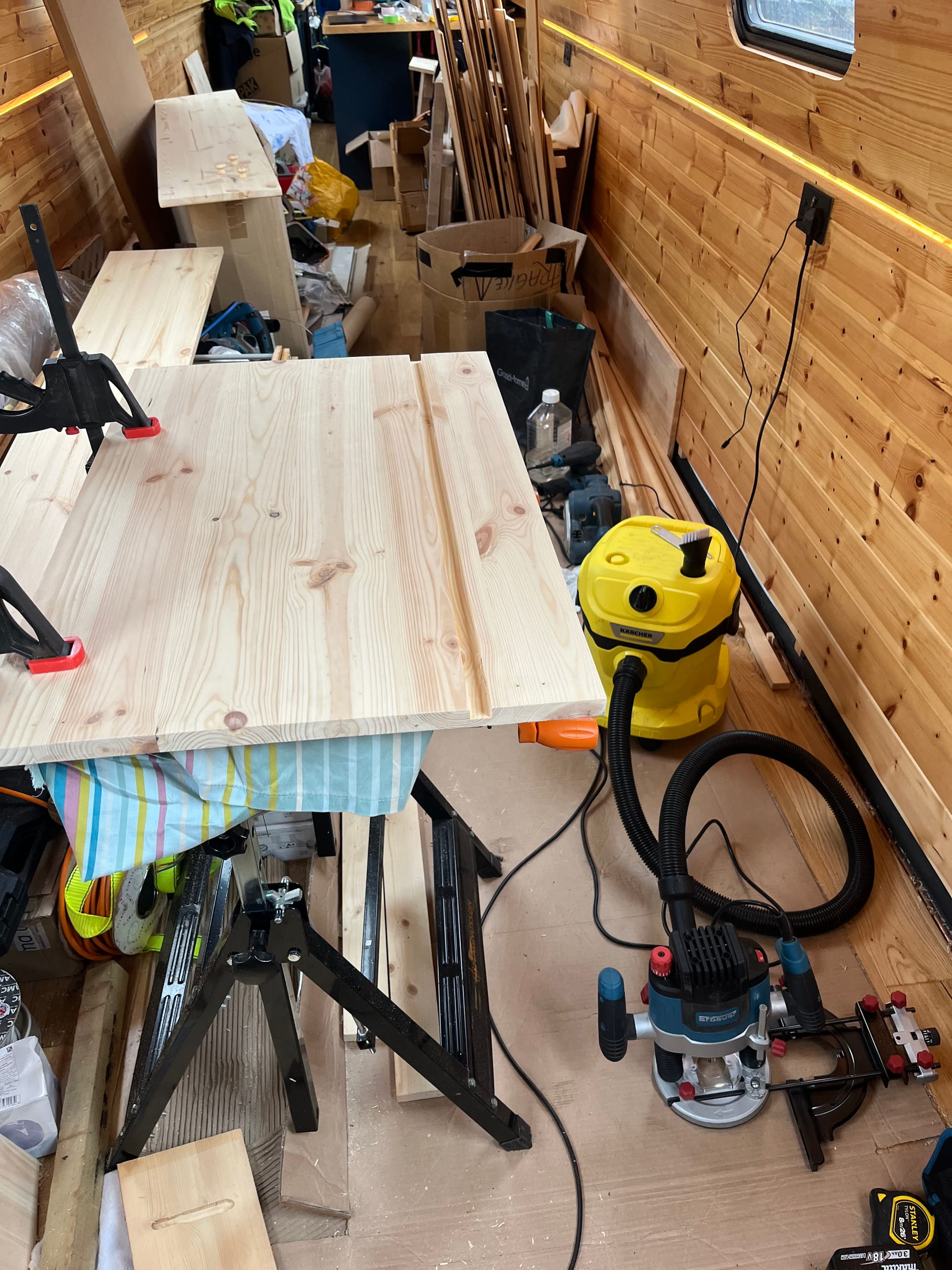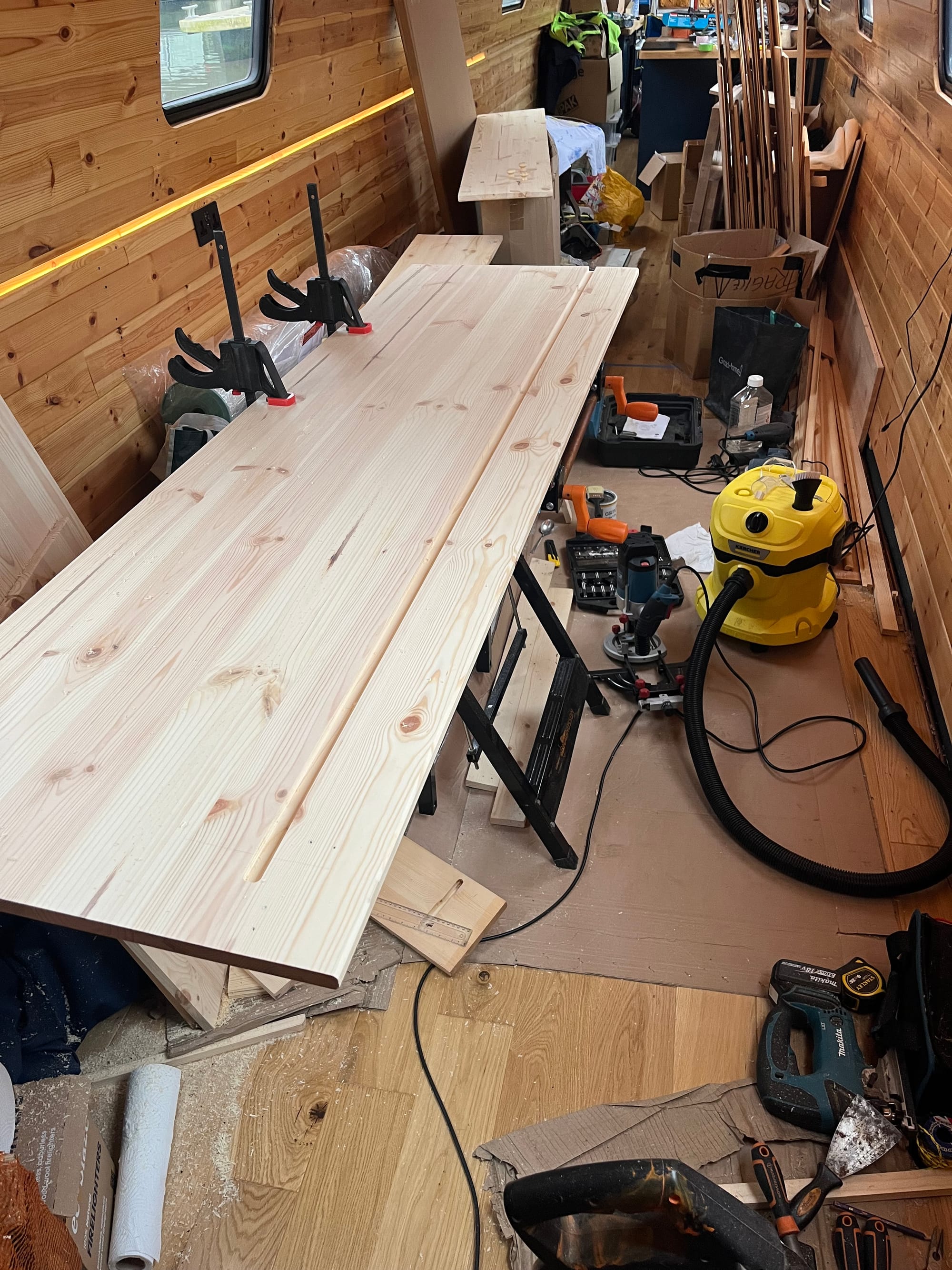 The current task is still the wardrobe, and I finished the varnishing after routing the lighting grooves: