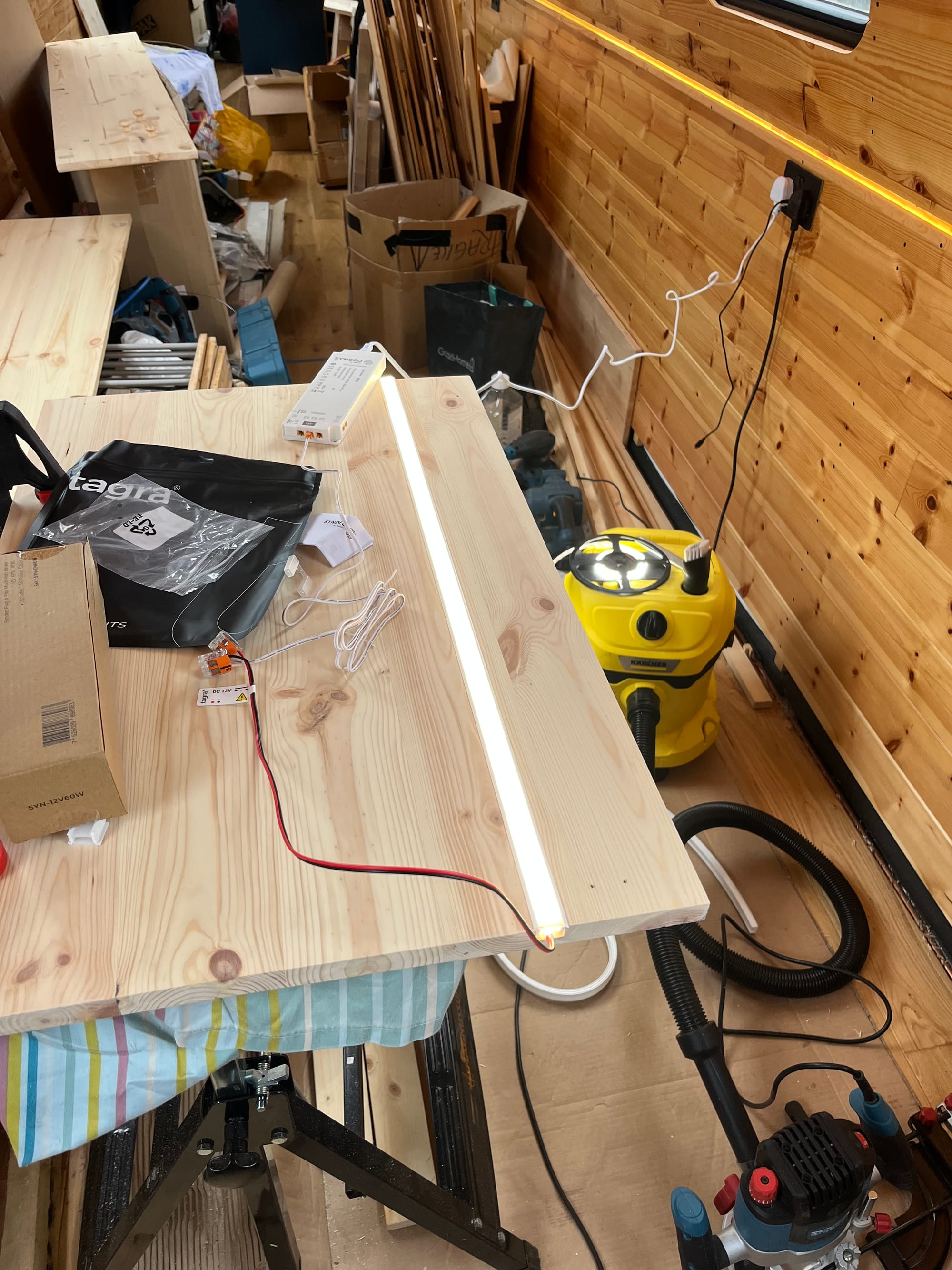 I'm so incredibly excited to open the door for the first time and have it BEAM. It'll be glorious. It was a mission finding out what lights to get, and at what luminosity... it's a different set of constraints to ambient room lighting. There were pre-made joinery strips for $$$, but ehh so I went with thin-ish 4000K high-CRI LEDs, and a silicone diffuser on top. And of course it'll be automatic, when either door opens.