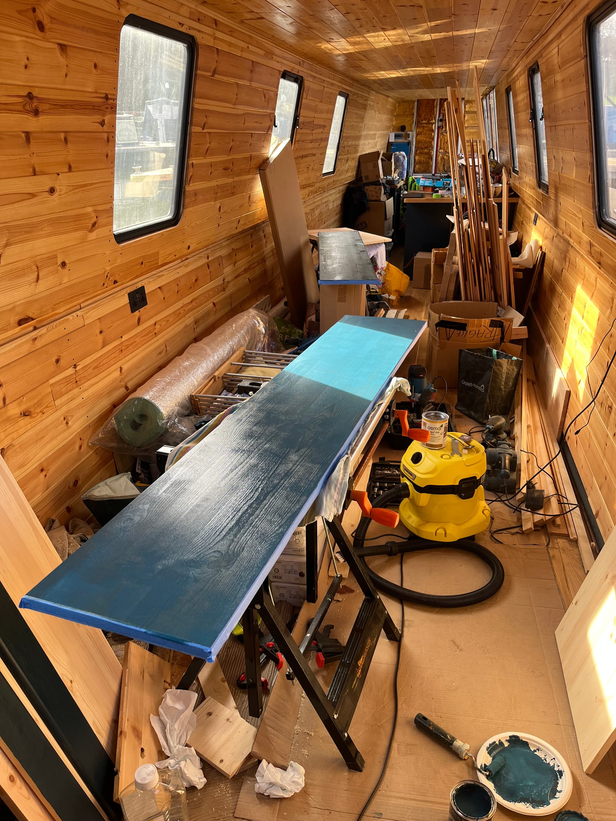 Then eestate blue door painting, to match the chest of drawers and skirting boards: