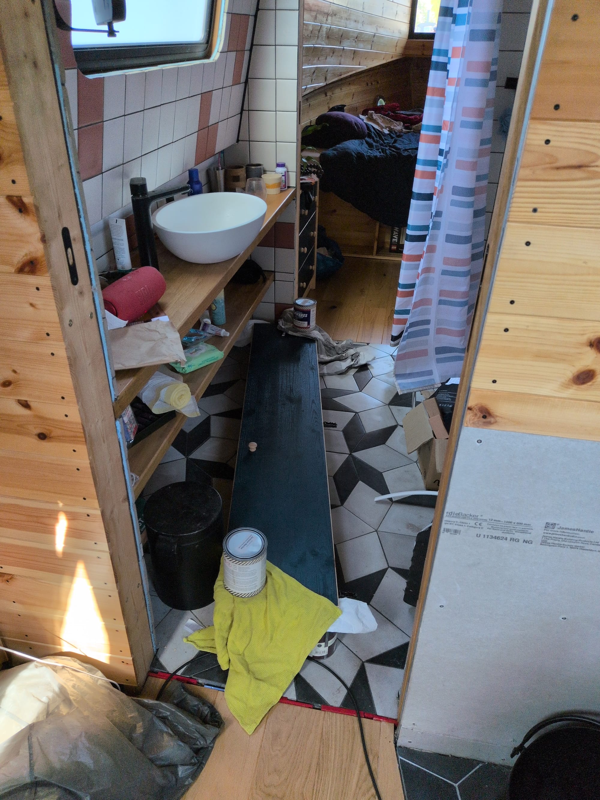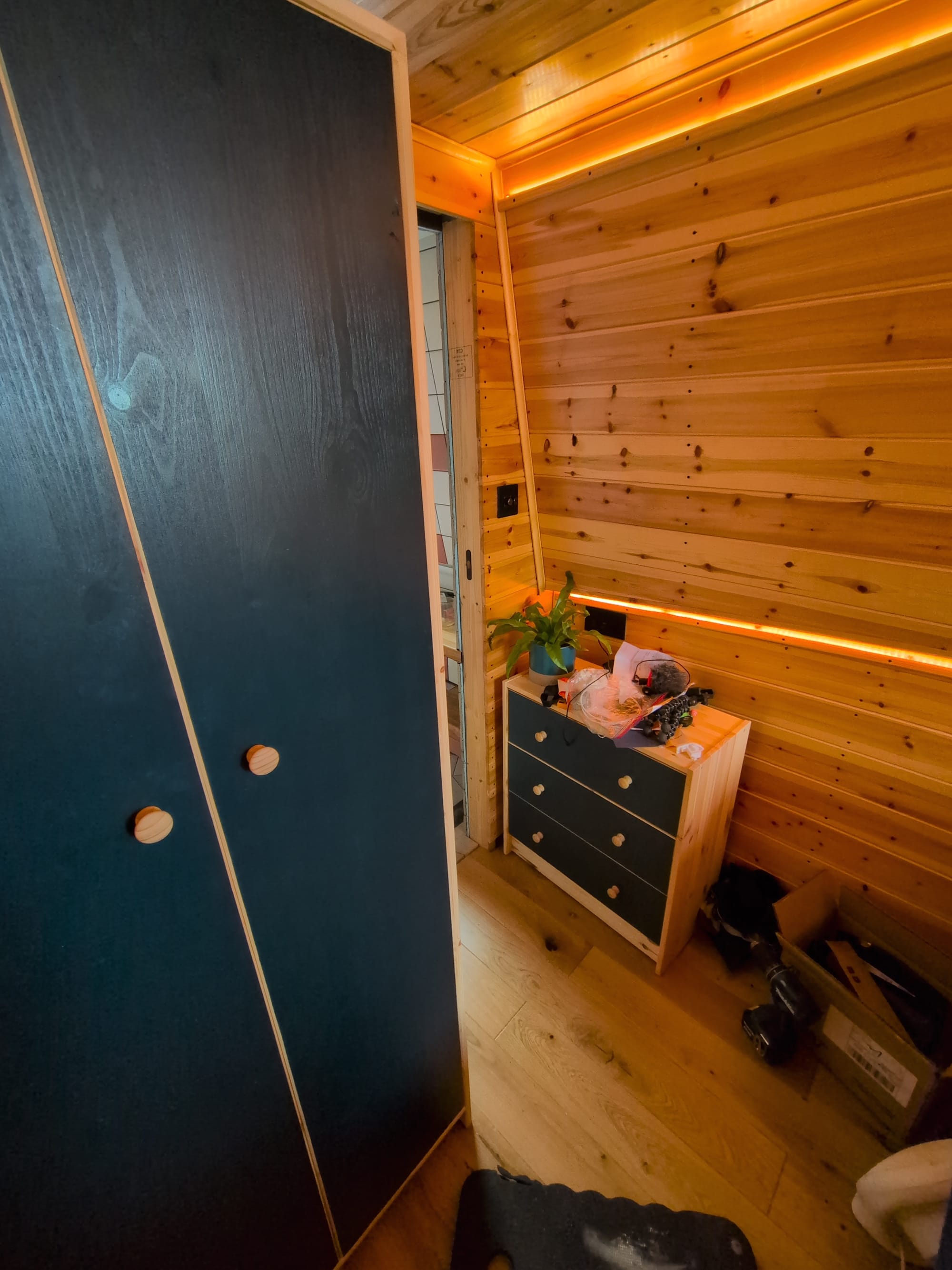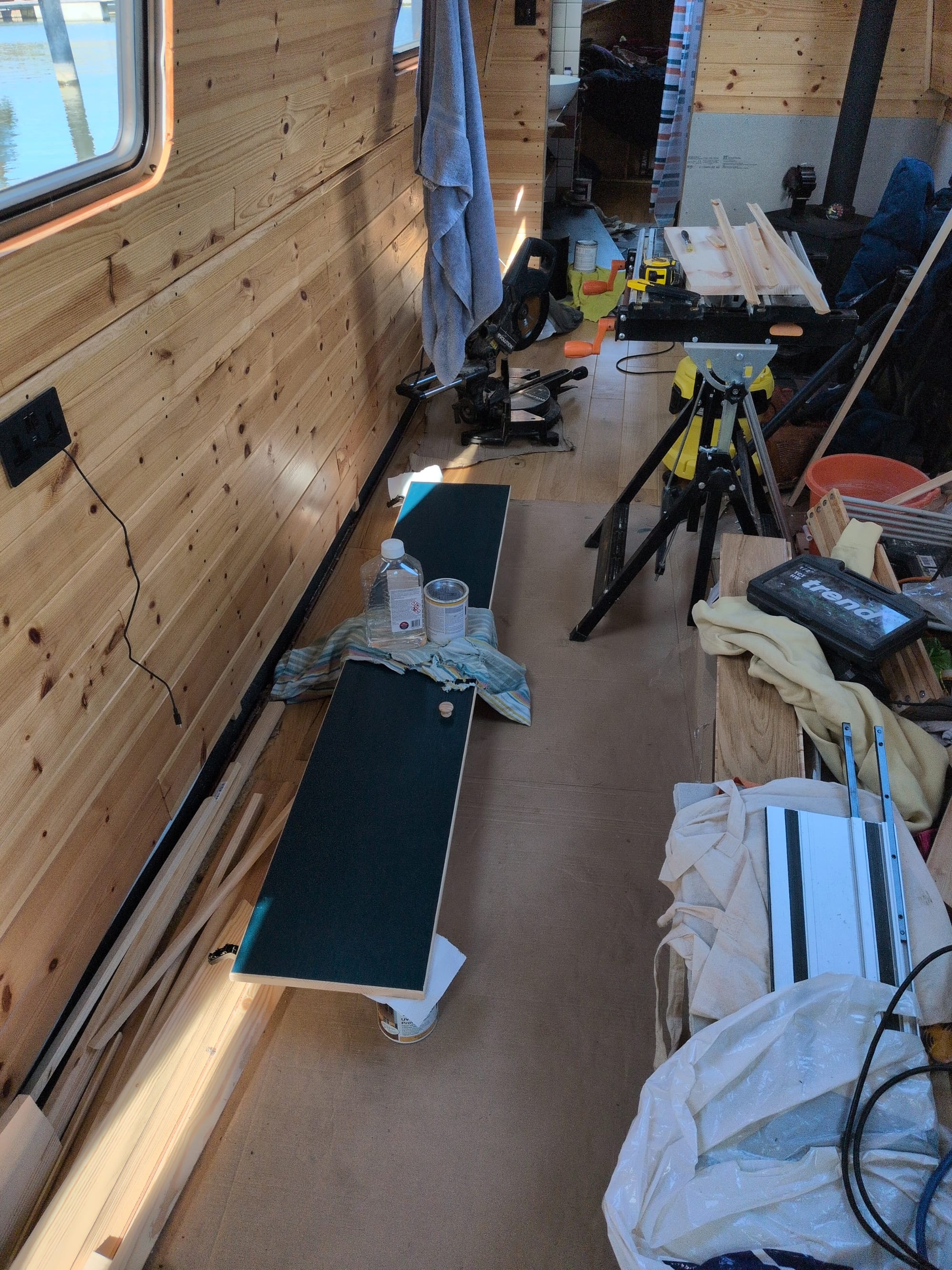 I was back to the boat on April 1st, and walking onboard was a weird combination of relief, like this is correct, and hilarity, like what on earth...?! Then the final coat of wardrobe door paint: